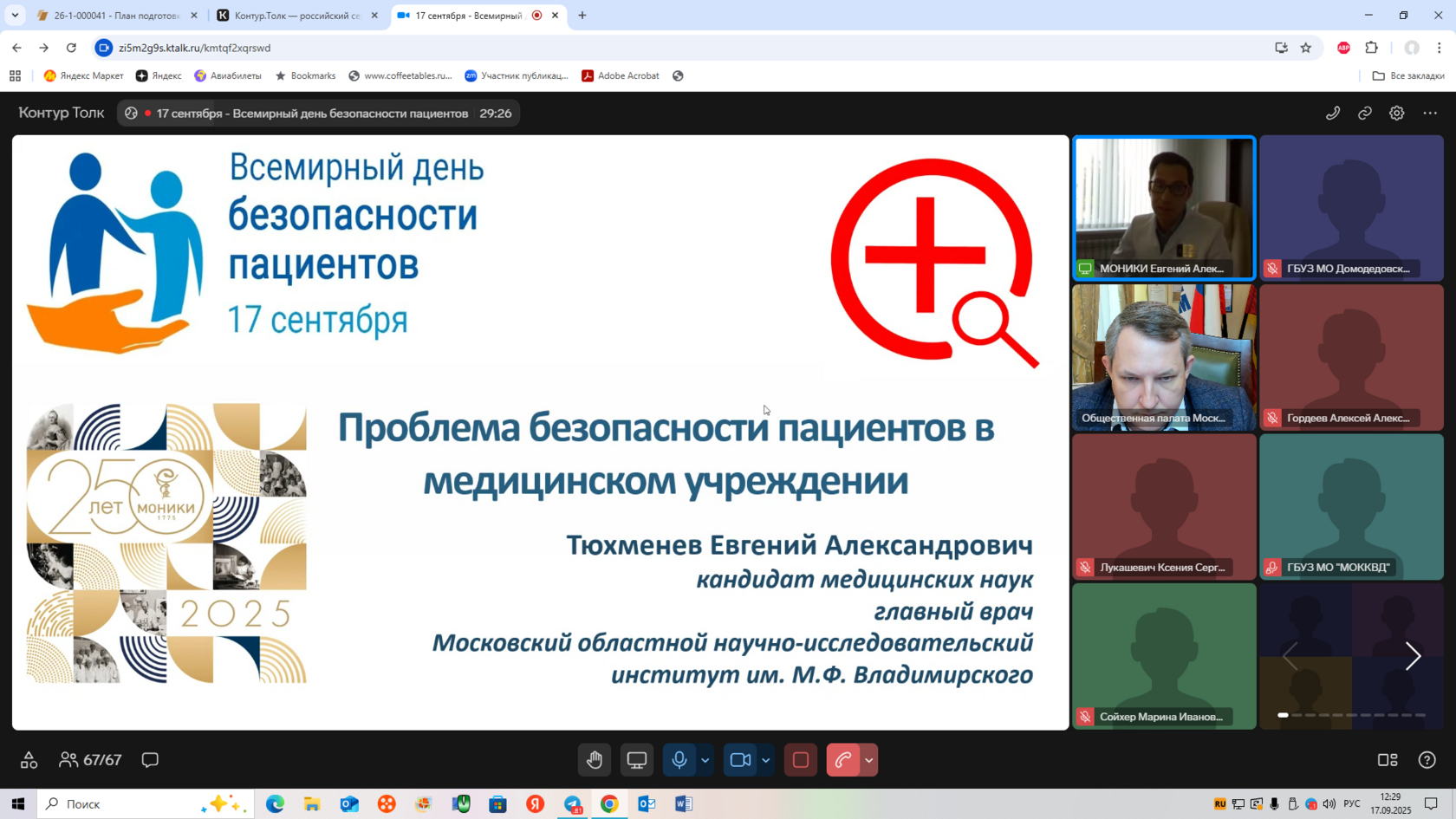 С докладом «Проблема безопасности пациентов в медицинском учреждении»;